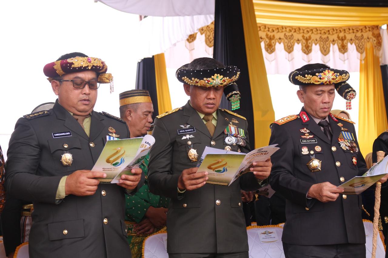 Morowali, Sulawesi Tengah — Kasdam XXIII/Palaka Wira Brigjen TNI Agus Sasmita, S.I.P., mewakili Pangdam XXIII/Palaka Wira Mayjen TNI Jonathan Binsar Parluhutan Sianipar menghadiri Upacara Peringatan Hari Jadi Kabupaten Morowali ke-26 yang digelar di Alun-Alun Rumah Jabatan Bupati Morowali, Desa Matansala, Kecamatan Bungku Tengah, Jumat (5/12/2025).