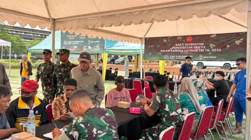 MOROWALI – Kodam XXIII/Palaka Wira melaksanakan Bakti Sosial (Baksos) dan Karya Bakti dalam rangka mendukung Latihan Gabungan (Latgab) TNI 2025 yang digelar di kawasan PT IMIP, Desa Fatufia, Kecamatan Bahodopi, Kamis (20/11/2025).